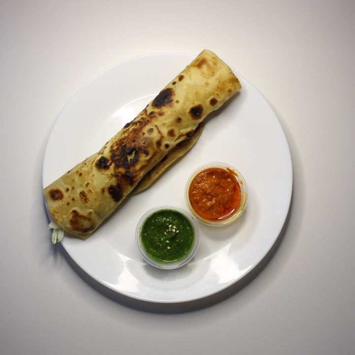 A vibrant blend of fresh veggies, tender potato patty, and aromatic spices topped with cheese is all rolled into a crispy, warm Frankie for a tasty and nutritious delight.